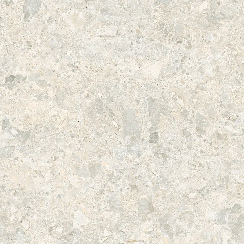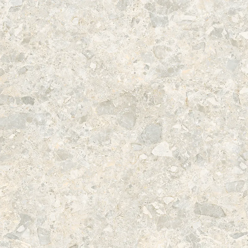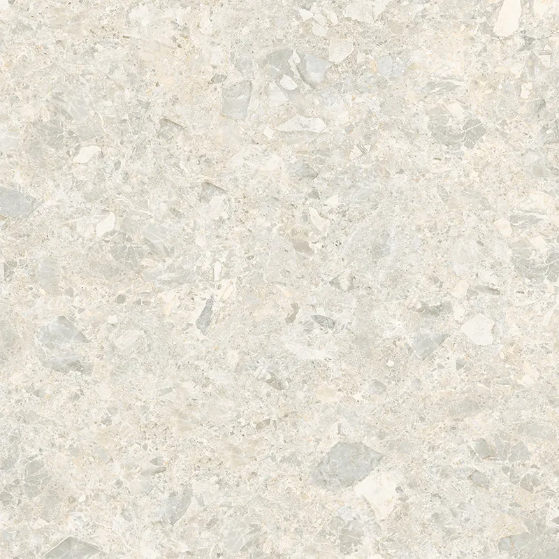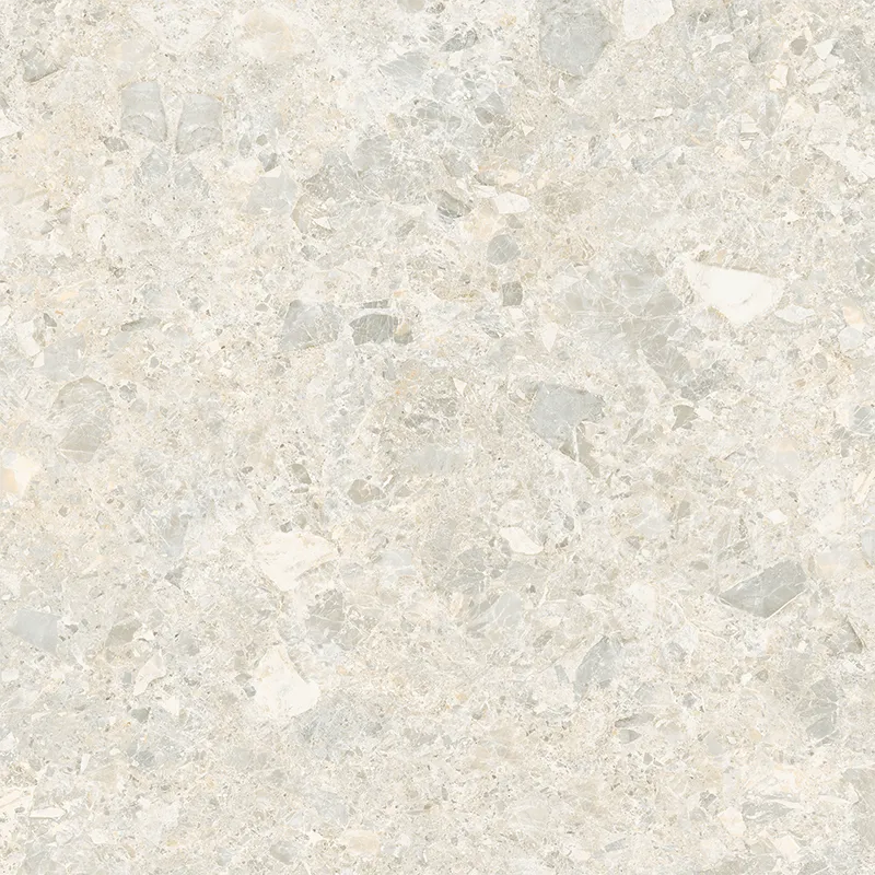 The beige color scheme makes the contrast between light and dark blocks more vibrant. The pebbles are evenly distributed like snowflake fragments. The color transitions gently from warm white to light gray, retaining a fashionable and sophisticated feel while conveying a warm and comfortable color expression for the home.