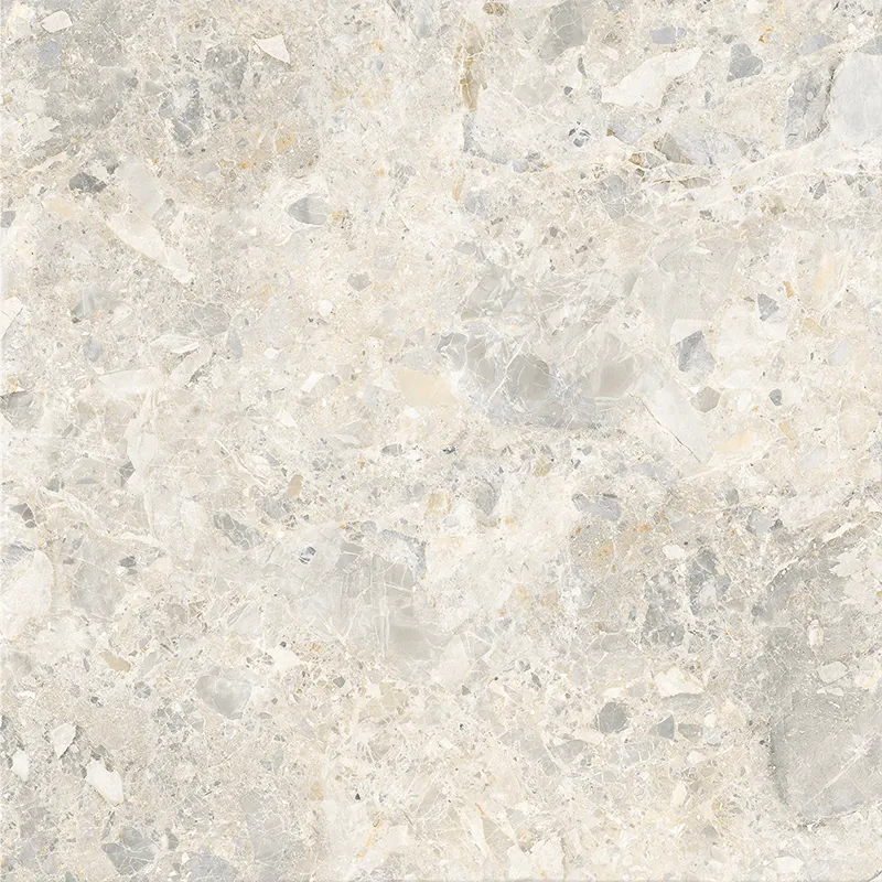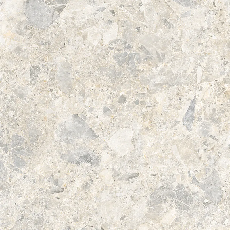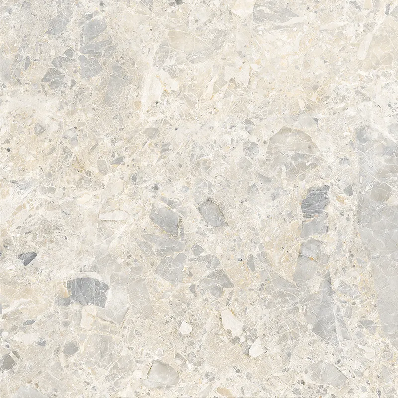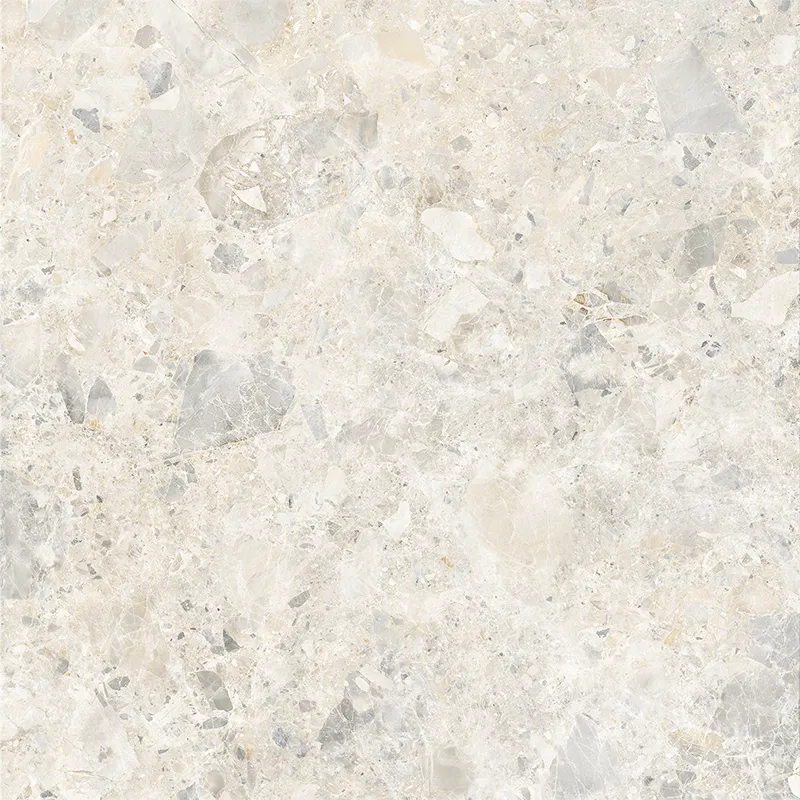The beige color scheme makes the contrast between light and dark blocks more vibrant. The pebbles are evenly distributed like snowflake fragments. The color transitions gently from warm white to light gray, retaining a fashionable and sophisticated feel while conveying a warm and comfortable color expression for the home.
