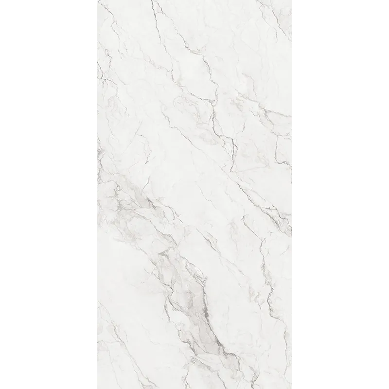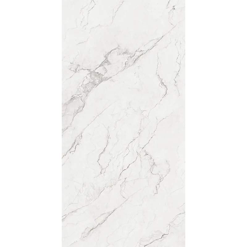 Application Style Description:The pure white base color expresses the highest quality of stone, while the winding dragon-like stone pattern breaks away from the dullness of low-white tiles, presenting a warm and soft visual effect. The outstanding whiteness makes the space shine with a unique temperament of purity and brightness.
